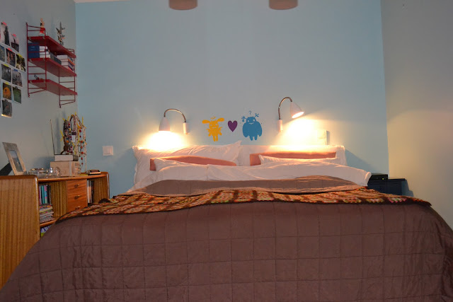 Tenkt litt på dette ei stund. Soverommet vårt e det eneste rommet som har farge på veggene. Begynne å bli litt lei av fargen nå..Lyst å fornye dette rommet med å male veggene hvite og tapetsere med phototapet på kortveggen. Kikket på et grafittibilde som æ trur vil passe bra. Ja også vil æ bytte ut det brune sengeteppet.